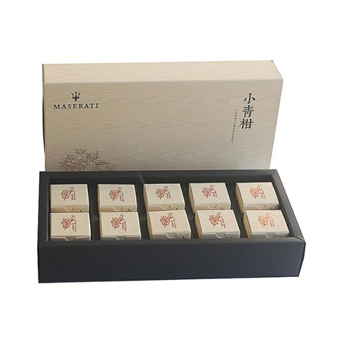 产品名称:小青柑 原料产地:云南新会 净重量:100克(10颗*10克) 起订量:50提(现货,小批量可定做) 打样时间:2-4天(专版打样时间另算) 生产时间:5-12天(2天出货) 产品尺寸:29*14*5.5CM 产品信息:见包装盒说明,有现样。